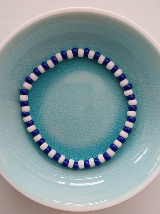 Light Blue & White Bead Evil Eye Pair of Bracelets