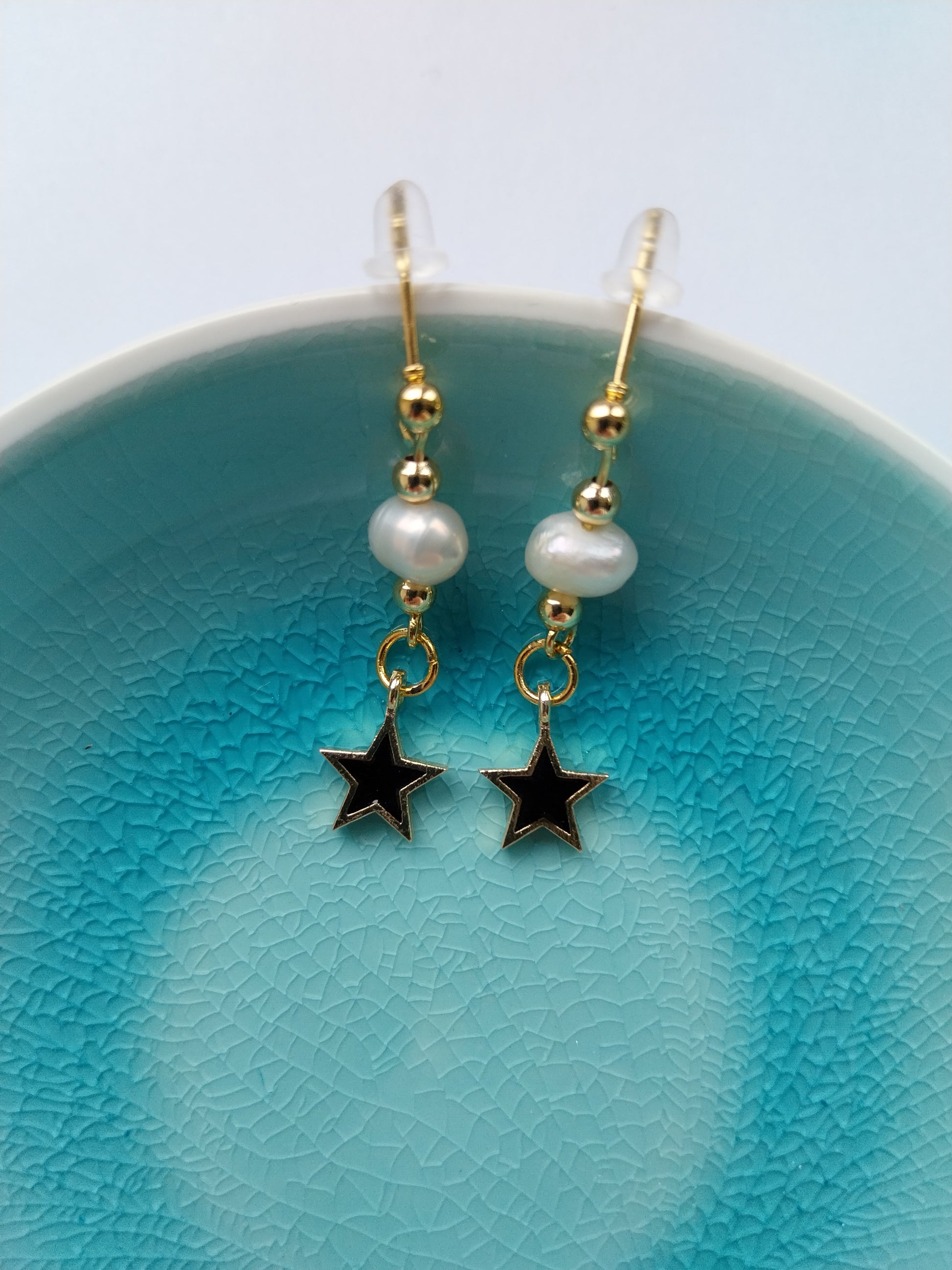 Channel your inner celestial being with these stunning earrings. Freshwater pearls and ivory stars are perfectly paired with gold plated findings for an ethereal look.
